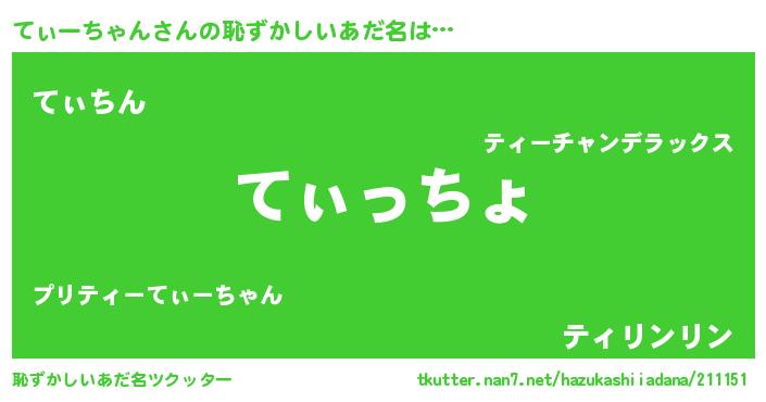 | 意味不明あだ名 | 『てぃーちゃんフォーエバー』 |