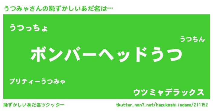 | ヘコむあだ名 | 『なまこ酢』『うつみゃ(爆)』 |