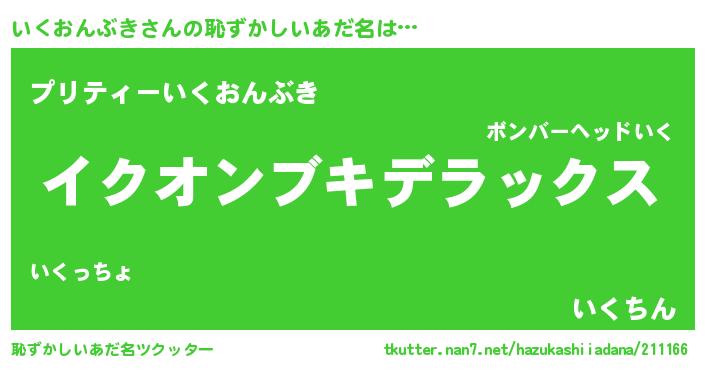 | 意味不明あだ名 | 『住所不定無職いくおんぶき(53歳)』 |