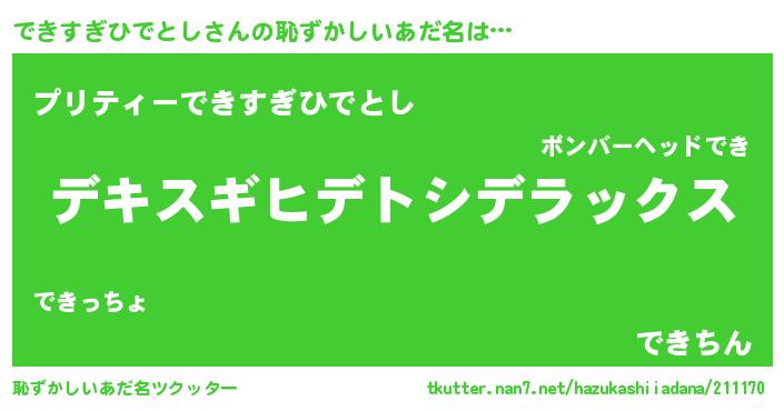 | 意味不明あだ名 | 『自称できすぎひでとし』 |