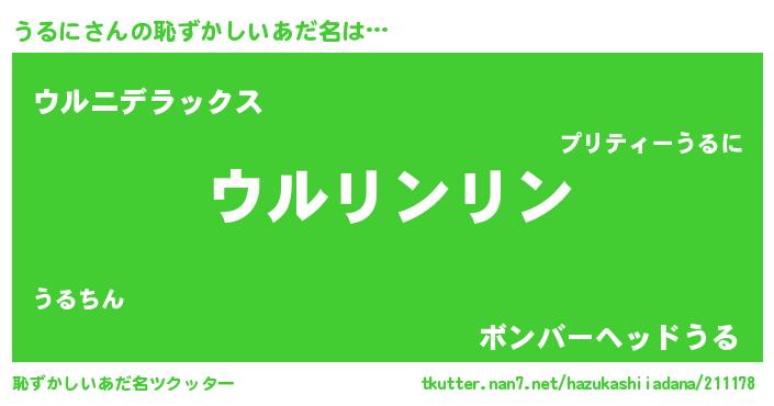 | 意味不明あだ名 | 『とにかく怪しいうるに』『自称うるに』 |