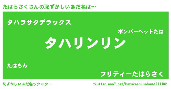 | 女子向けラノベタイトル風あだ名 | 『たはらさくは平凡を望む』 |