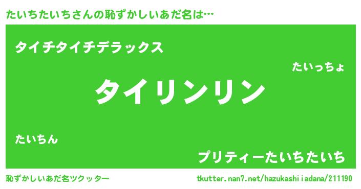 | 男性向けラノベタイトル風あだ名 | 『たいちたいちの嫁は女の子じゃないと思った?』 |