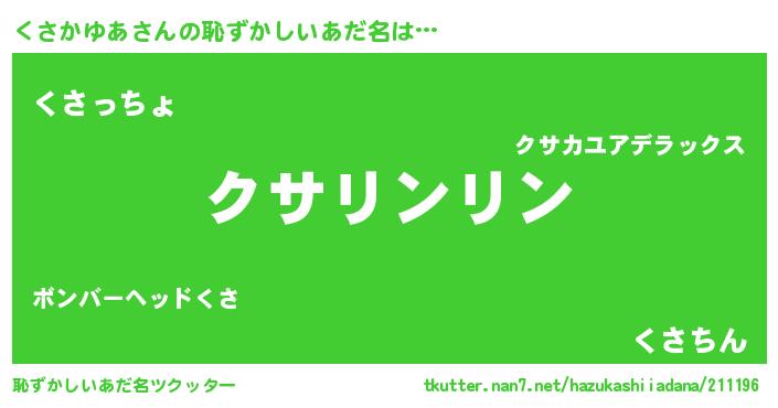 | 意味不明あだ名 | 『とにかく怪しいくさかゆあ』 |