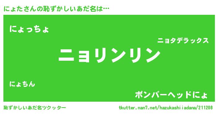 | 意味不明あだ名 | 『とにかく怪しいにょた』 |