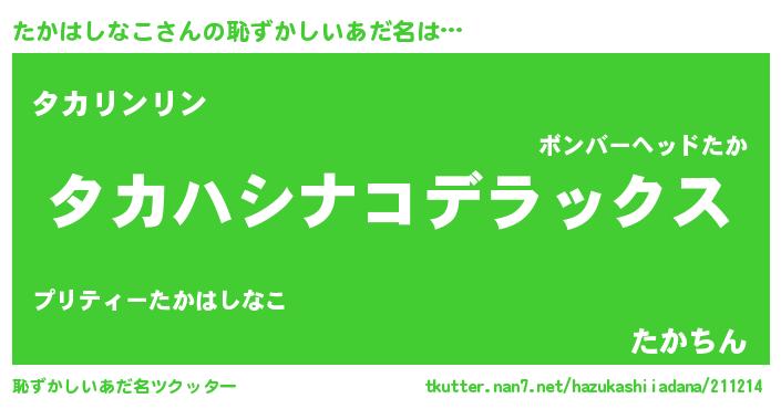 | 意味不明あだ名 | 『自称たかはしなこ』 |