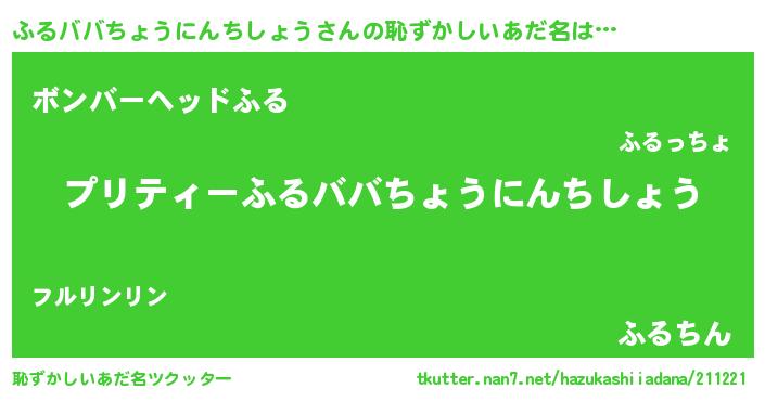 | ヘコむあだ名 | 『ふるもー』『なまこ酢』『ふるを』 |