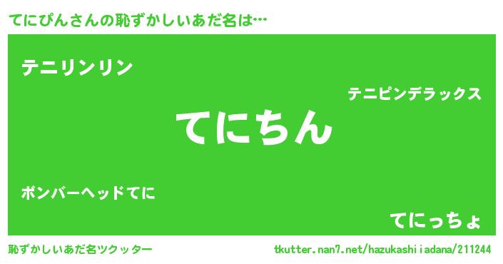 | ヘコむあだ名 | 『てにぴん(笑)』『てにぷりん』 |