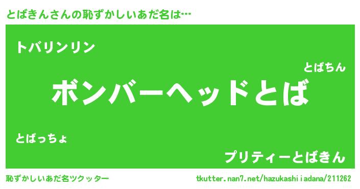 | ヘコむあだ名 | 『とばを』『とばっふぃ~』『つくし』 |