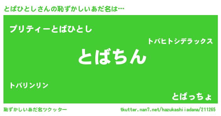 | ヘコむあだ名 | 『とばひとし(遠い目)』『とばにゅー』 |