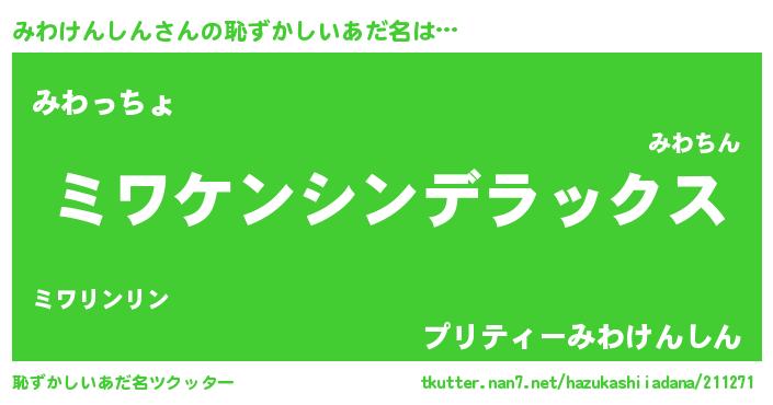 | 意味不明あだ名 | 『自称みわけんしん』 |