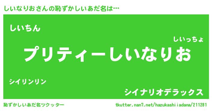 | ヘコむあだ名 | 『しいにゅー』『しいなりお(笑)』 |