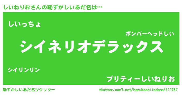 | 意味不明あだ名 | 『自称しいねりお』『ペロリンしいねりお』 |