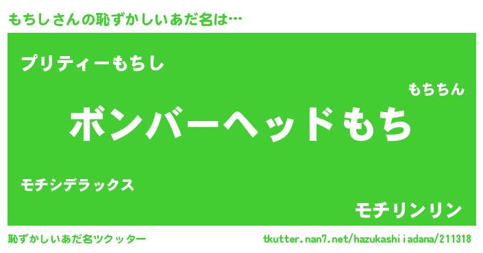 | 男性向けラノベタイトル風あだ名 | 『はたらくもちしさま!』『緋弾のモチシ』 |