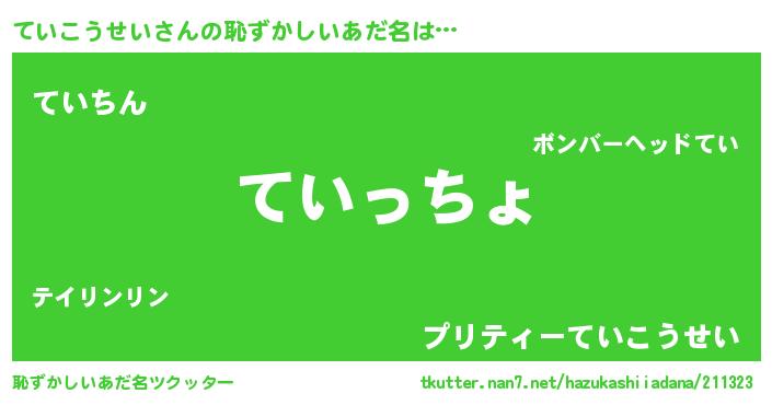 | 意味不明あだ名 | 『ていこうせいフォーエバー』 |