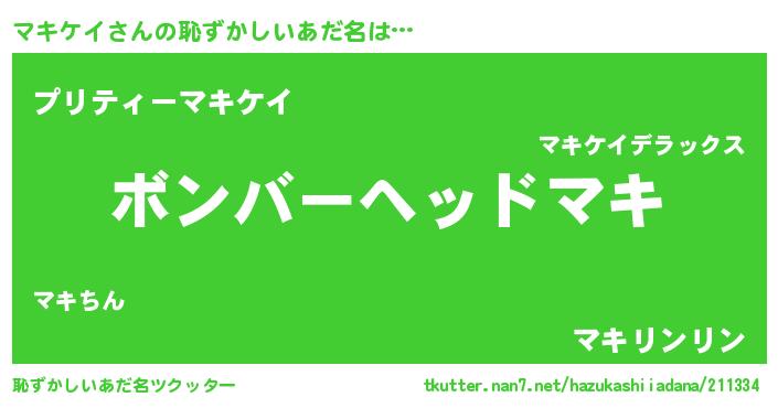 | 男性向けラノベタイトル風あだ名 | 『おまえをオタクにしてやるから、俺をマキケイにしてくれ! 』 |