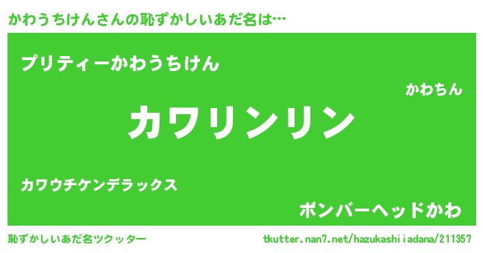 | ポケモン風あだ名 | 『ヒカワウチケン』『カワチュウ』 |