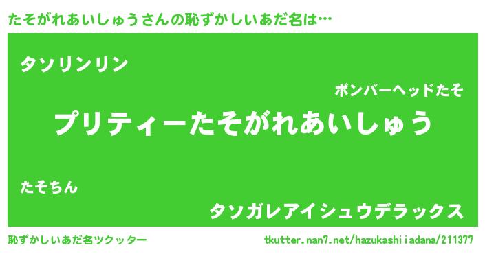 | ポケモン風あだ名 | 『タソチュウ』『ヒタソガレアイシュウ』 |