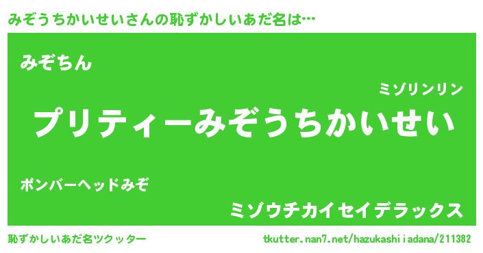 | ヒーロー風カッコイイあだ名 | 『仮面ミゾダー』『ネオミゾウチカイセイ』 |