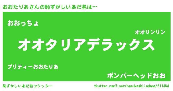 | 意味不明あだ名 | 『自称おおたりあ』 |
