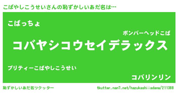 | ポケモン風あだ名 | 『コバセウス』『コバゴンZ』 |