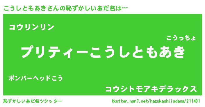 | 男性向けラノベタイトル風あだ名 | 『この素晴らしい世界にこうしともあきを!』 |
