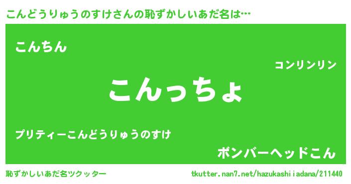 | ヘコむあだ名 | 『酢こんぶ』『こんどうりゅうのすけ(笑)』 |