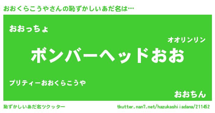 | 意味不明あだ名 | 『住所不定無職おおくらこうや(68歳)』 |
