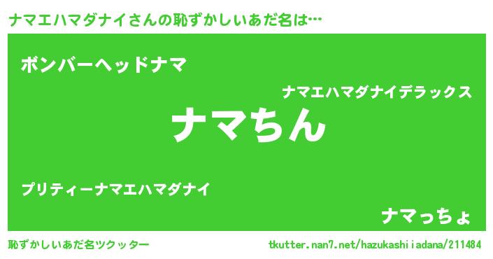 | ヒーロー風カッコイイあだ名 | 『仮面ナマダー』『ネオナマエハマダナイ』 |