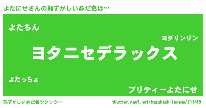 | 意味不明あだ名 | 『自称よたにせ』『永久保存よたにせ』 |