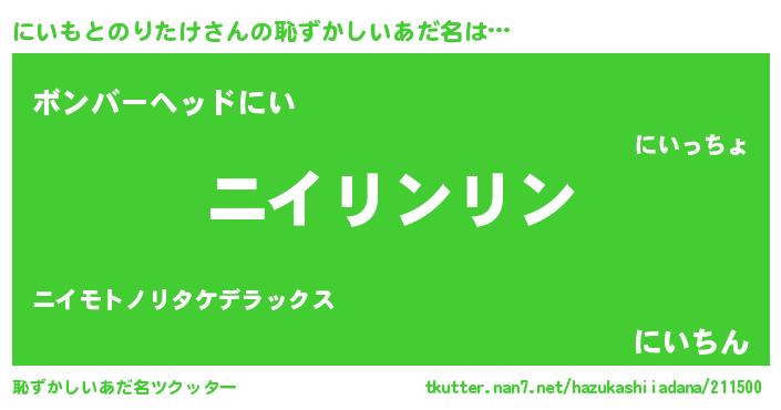 | 男性向けラノベタイトル風あだ名 | 『にいもとのりたけの嫁は女の子じゃないと思った?』 |