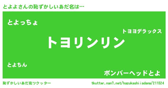 | ヘコむあだ名 | 『とよぷりん』『豆乳』『とよふぇ~』 |