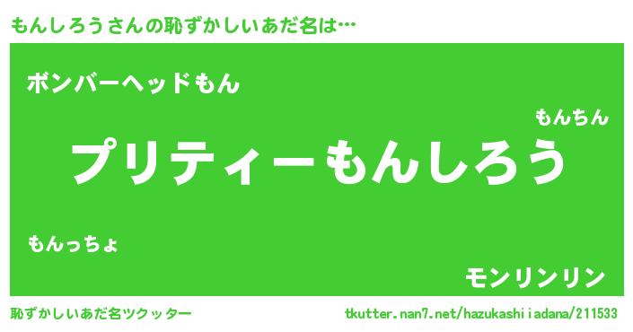 | ヒーロー風カッコイイあだ名 | 『スーパーモンシロウ』『仮面モンダー』 |