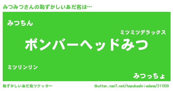 | ヘコむあだ名 | 『みつみつ(爆)』『レバニラ』 |