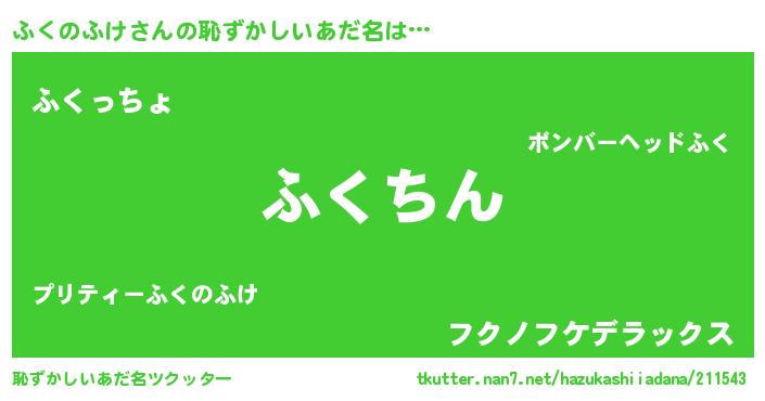 | ヒーロー風カッコイイあだ名 | 『ネオフクノフケ』『スーパーフクノフケ』 |