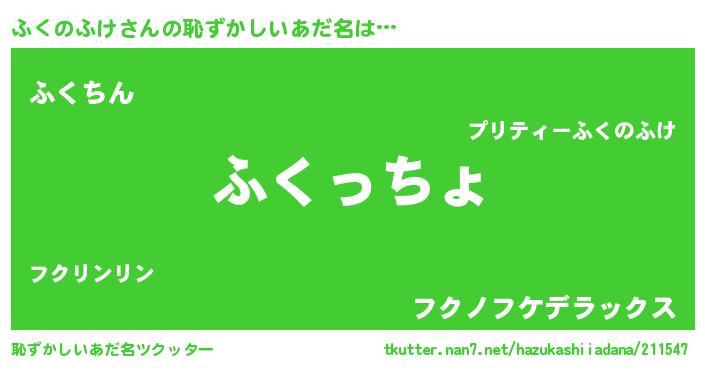 | 女子向けラノベタイトル風あだ名 | 『ふくのふけの雑貨屋さん』 |