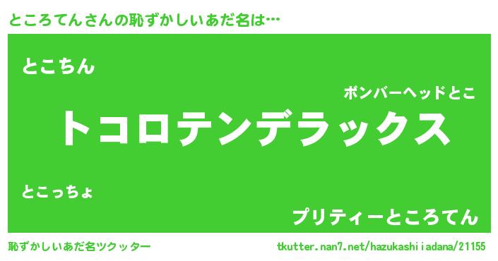 | ヒーロー風カッコイイあだ名 | 『超時空戦士トコロテン』『仮面トコダー』 |
