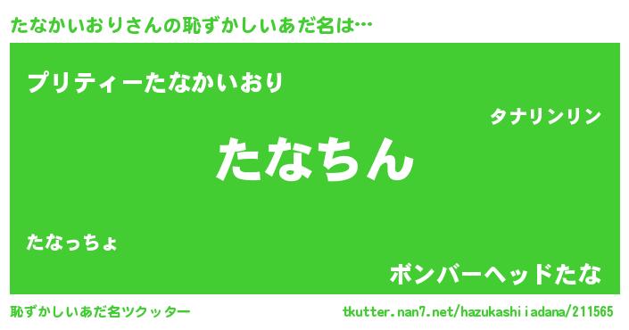 | ヘコむあだ名 | 『たなかいおり(笑)』『たなふぇ~』 |