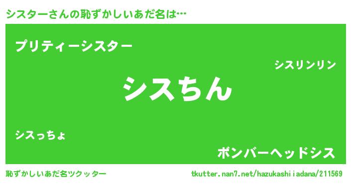 | 意味不明あだ名 | 『永久保存シスター』『ペロリンシスター』 |