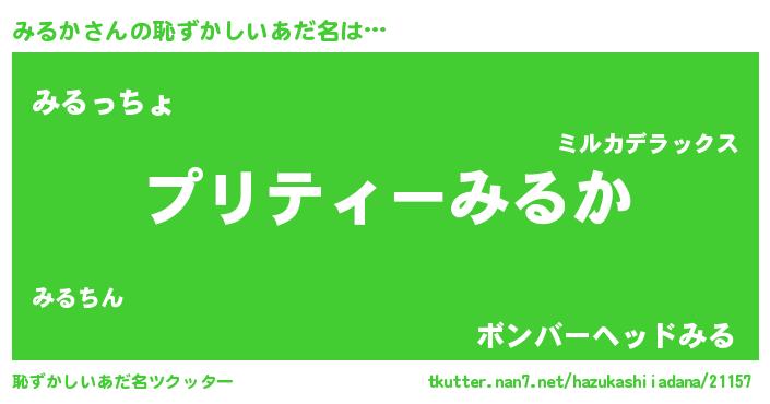 | ヒーロー風カッコイイあだ名 | 『スーパーミルカ』『ウルトラみるかマン』 |