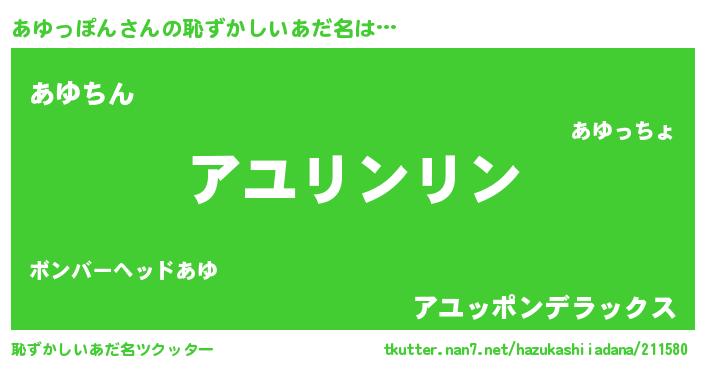 | ヘコむあだ名 | 『あゆっ子』『あゆっぽん(苦笑)』 |