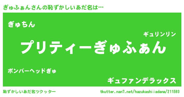 | 意味不明あだ名 | 『ペロリンぎゅふぁん』『自称ぎゅふぁん』 |