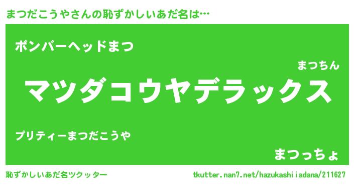 | ヒーロー風カッコイイあだ名 | 『仮面マツダー』『最強戦士マツダコウヤ』 |