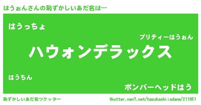 | 意味不明あだ名 | 『自称はうぉん』『はうぉんフォーエバー』 |
