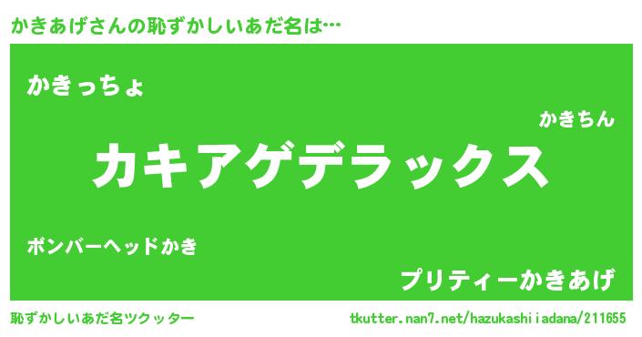 | ヒーロー風カッコイイあだ名 | 『ウルトラ戦士カキアゲ』『ネオカキアゲ』 |