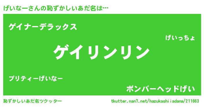 | 意味不明あだ名 | 『とにかく怪しいげいなー』 |