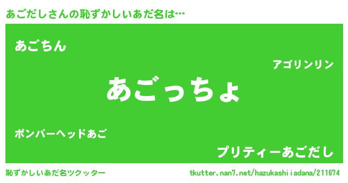 | 意味不明あだ名 | 『あごだしフォーエバー』 |