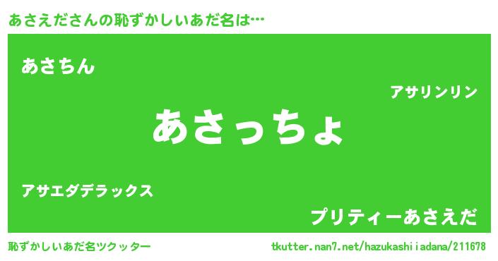 | ヘコむあだ名 | 『つくし』『あさえだ(笑)』 |