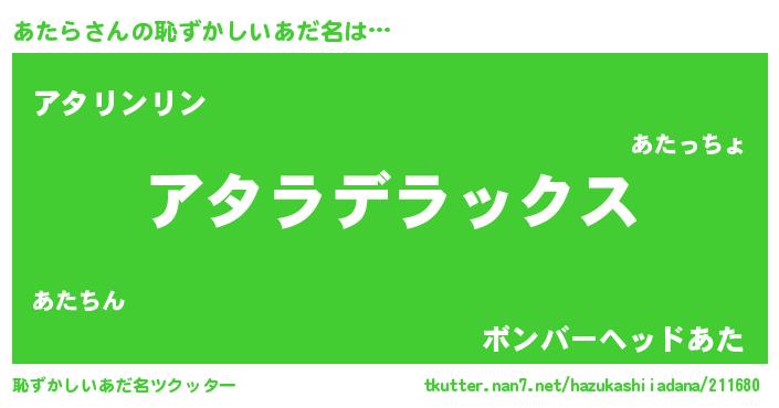 | 意味不明あだ名 | 『自称あたら』『とにかく怪しいあたら』 |
