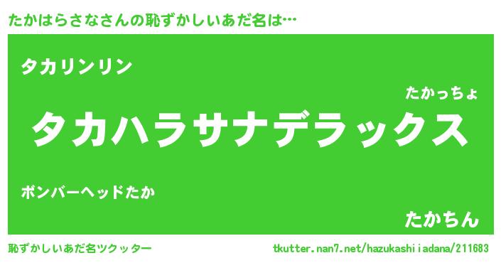 | 意味不明あだ名 | 『自称たかはらさな』 |